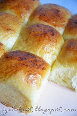 hari tu akak ada try buat roti naik guna recipe given by a friend. memang frustrating, langsung tak jadi. i'll try to bake another roti naik, using this recipe pulak. thx izah :)
